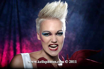 | 2 November 2011: BLOWING BUBBLES! Photoshoot with Mike Kells Just back from a quick photoshoot with Mike Kells in hs new studio. He has been keen to do something with 'Bubbles' since we first started working together. Steph was up for a 'mohican' cut, while Kay Booth, the make-up artist was keen to practice her skills before the contest next week. As you can see it was avery worthwhile exercise. Great team ... great results as you can see! |